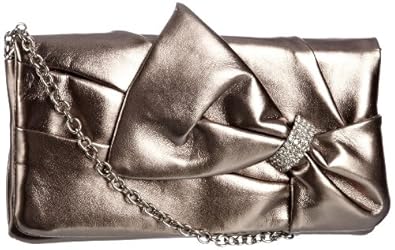 Made inside a stunning new season have to have shimmering soft shine polished faux metallic leather, this dressy mini fashion flap-over clutch bag with shoulder strap will add glamour and glitz to any occasion and is also perfect from day to evening. FEATURES Designed which has a semi relaxed construction, it is detailed with deep pleating plus a feature oversized softly gathered ribbon bow on leading panel trimmed with the centre having a thick oval ring of attractive opulent crystal faux diamante stones. This stylish yet versatile handbag comes complete using a detachable drop in heavy chain handle that will be either carried by hand or worn hands free within the shoulder. Inside there's a spacious compartment for the daily essentials as well as a zip pocket to keep cosmetics as well as other small circumstances to hand.
